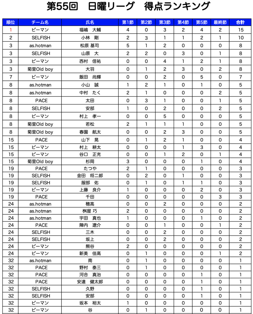 得点王はピーマンさんの福嶋さん!! 15得点となりました!!