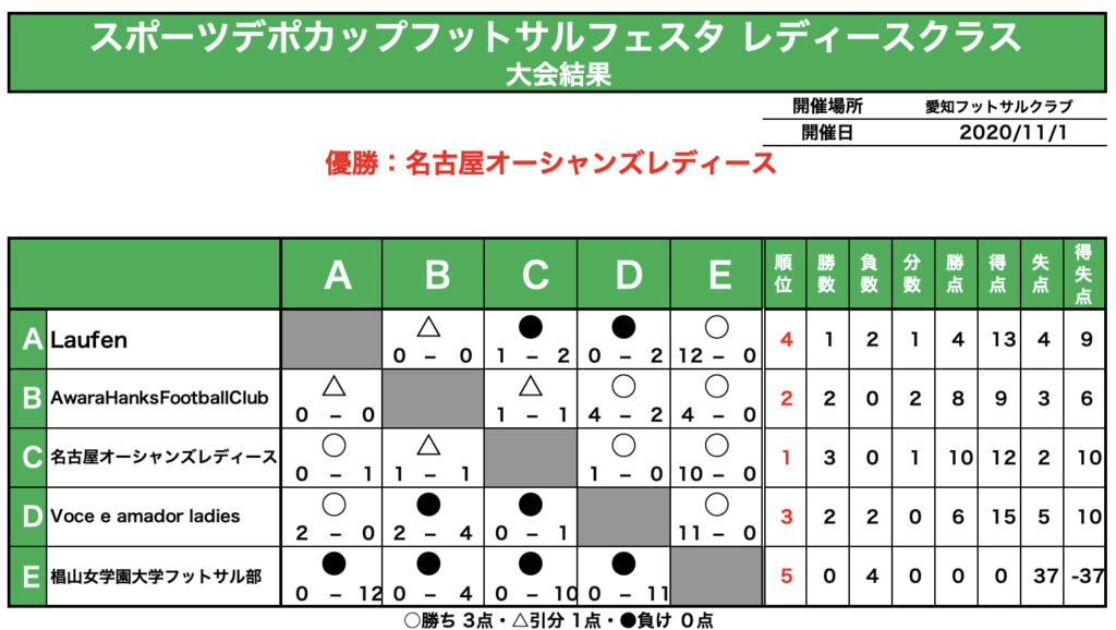優勝は【名古屋オーシャンズレディース】さんでした。おめでとうございます!!