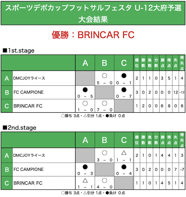 ⚽️結果/🏆優勝:BRINCAR FC
